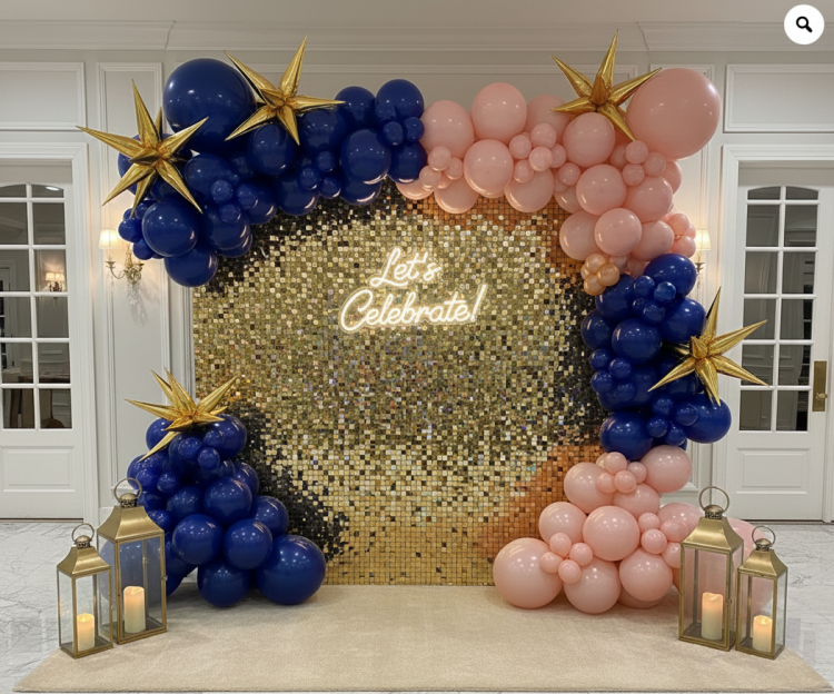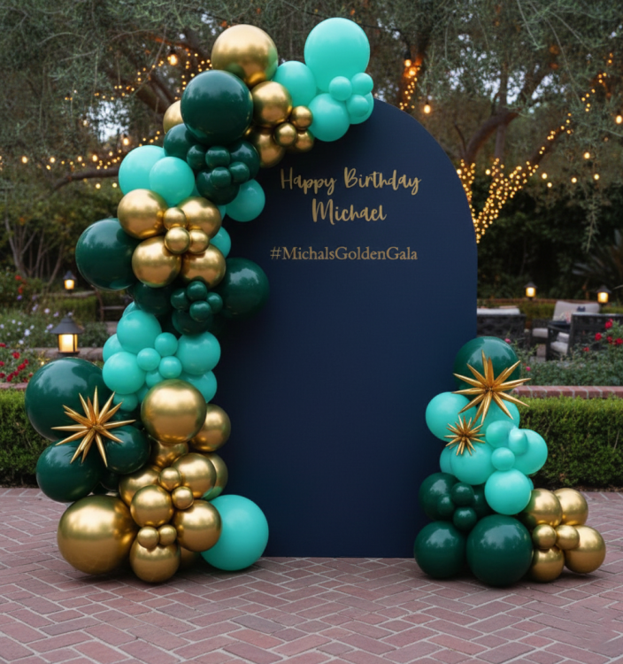 - The Look: A mix of different balloon sizes that appear to "grow" or spill across the frame of the backdrop.